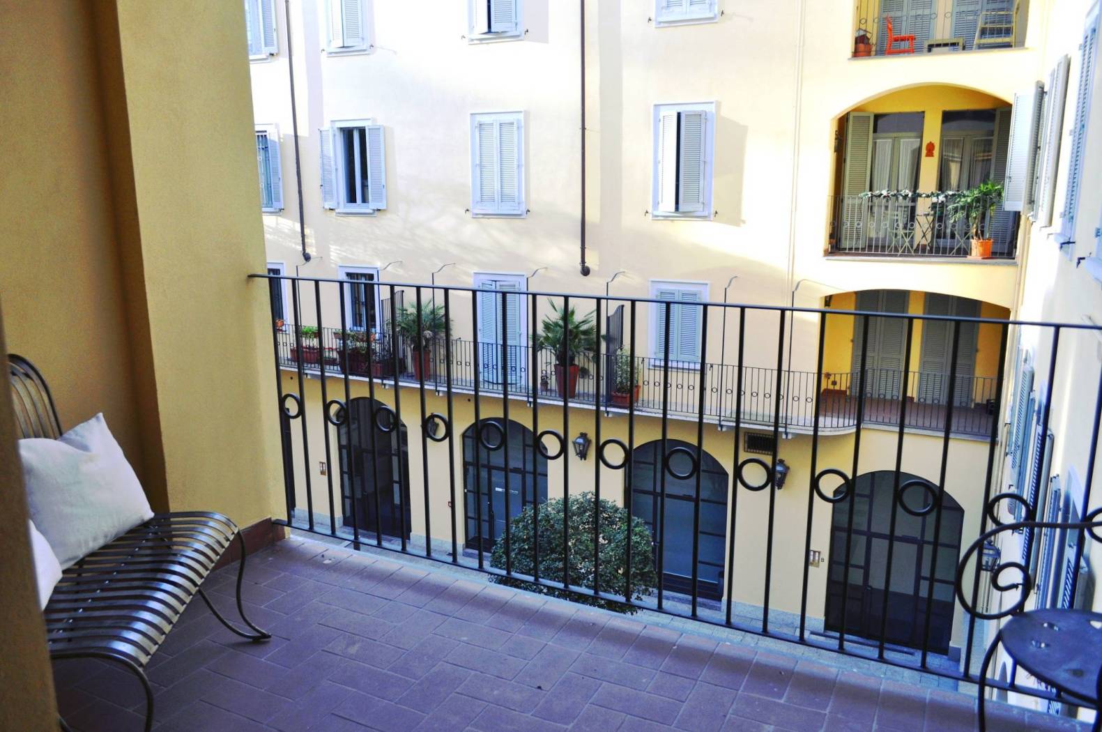 Ingresso, soggiorno, angolo cucina, camera matrimoniale, servizio finestrato, cabina armadio e terrazzino loggiato che affaccia su cortile interno