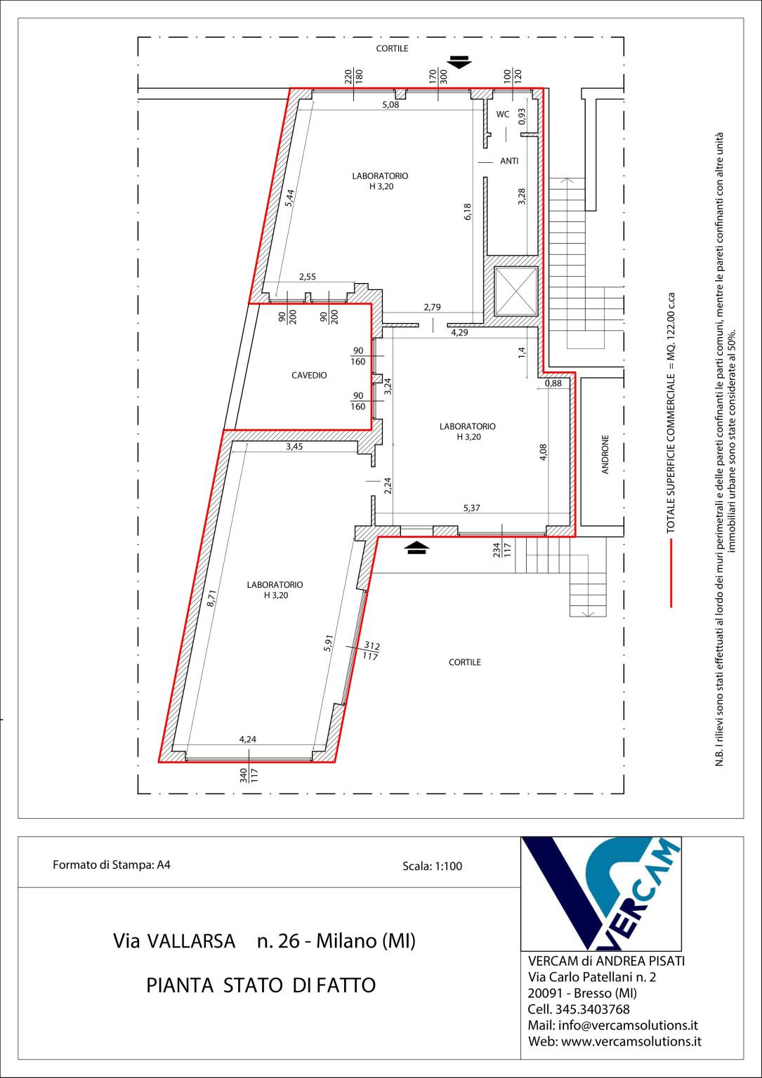 Sovim immobiliare propone in locazione in Via Vallarsa , vicinissimo a Fondazione Prada locale ad uso laboratorio , classe C/3, di circa 122 mq sito al piano -1 di uno stabile dotato di ingresso doppio, autonomo e ben tenuto nelle parti comuni.